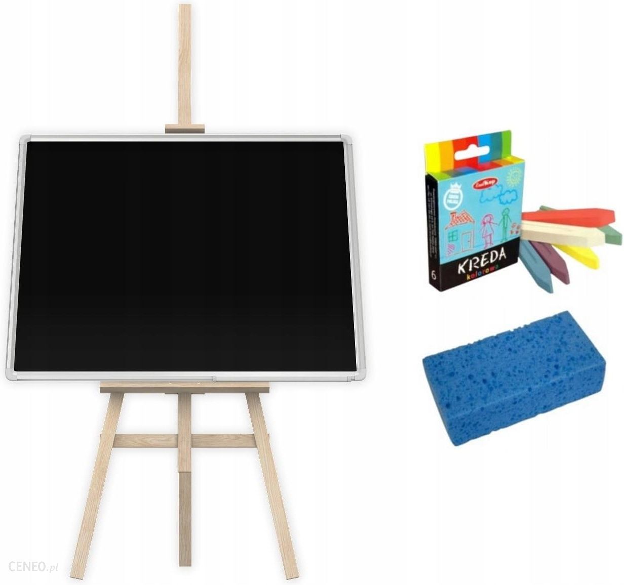 Tablica magnetyczna czarna w ramie aluminiowej 90x60cm + sztaluga drewniana bukowaMateriał – sztaluga została wykonana z solidnego bukowego drewna, zapewniające stabilność konstrukcji i odporność na uszkodzeniaRegulacja – wysokość sztalugi od ziemi to 145cm. Sztaluga jest w pełni regulowana i może podtrzymywać płótno w rozmiarach od 30 cm do 105 cmFunkcjonalna – sztalugę można wykorzystać zarówno do pracy studyjnej jak i plenerowej. Idealnie sprawdza się do malarstwa oraz rysownictwa. Może pełnić również funkcję stelaża do prezentacji obrazów czy też stelaża do wykorzystania na weselach.Staranne wykończenie – sztaluga ALLboards jest w pełni dopracowana. Posiada składaną konstrukcję, która jest dokładnie wyszlifowana. Drewno bukowe nie posiada żywicy, która mogła by ubrudzić otoczenie.Gotowa do użytku – drewniana sztaluga jest gotowa do użytku zaraz po wyjęciu z pudełka. Wszystkie elementy są fabrycznie dopasowane i zamontowane, tak aby uniknąć czasochłonnej własnoręcznej pracy.DANE TECHNICZNEwymiary zewnętrzne: 90x60cmpowierzchnia: metalowa, magnetyczna, lakierowanakolor powierzchni: czarnyrama: aluminiowa anodowanatyp profilu ramy: EXsposób montażu: otwory w narożnikachRegulacja wysokości jest łatwa i intuicyjna! Wystarczy odkręcić nakrętki motylkowe i dostosować dwie regulowane półki (górnej i dolnej) do pożądanej szerokości, w zależności od posiadanego podobrazia/obrazu/tablicy.Sztaluga może być wykorzystana w zestawach z naszymi tablicami ALLboards: kredowymi, magnetycznymi białymi, korkowymi czy też tekstylnymi.Sztaluga jest złożona i kompletna, gotowa do użytku od razu po wyjęciu z pudełka!