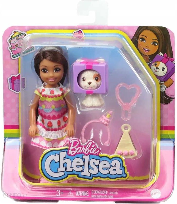 BARBIE Club Chelsea Lalka w urodzinowym stroju GRP71Dzieci mogą odgrywać wiele słodkich historii z lalkami Chelsea w tematycznych kostiumach.Ta lalka Chelsea jest super-urocza w kostiumie urodzinowym ze słodkim nadrukiem i falbanami. Opaska w kształcie babeczki ze świeczką i różowe buty dopełniają jej wyglądu, a jej psiak zakłada pasujący kostium w kształcie prezentu!Dołączony brelok z wdziękiem ułatwia przypięcie jej do plecaka lub ubrania – zabierz lalkę Chelsea w drogę.Wiek: 3+EAN: 887961909708