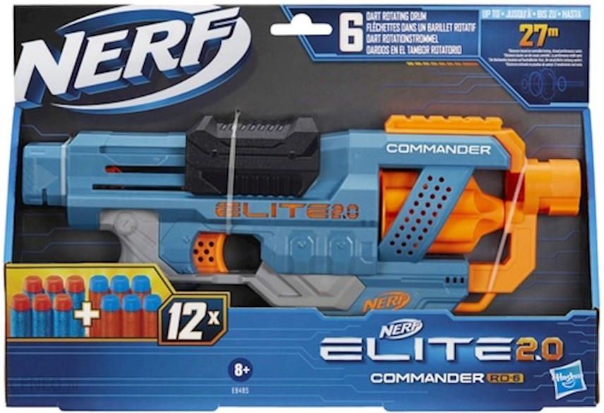 Hasbro Nerf Elite 2.0 Commander RD-6 E9485- WYRZUTNIA Z MOŻLIWOŚCIĄ MODERNIZACJI: Dostosuj wyrzutnię do każdej bitwy lub misji, wykorzystując 3 szyny na akcesoria oraz miejsca mocowania lufy i kolby (kolby i przedłużenia lufy nie dołączono)- DOŁĄCZONO 12 STRZAŁEK NERF: W zestawie jest 12 oryginalnych strzałek Nerf – wystarczają do załadowania 6-strzałkowego magazynka bębnowego do pełna i zostaje jeszcze 6 strzałek do przeładowywania. Wystrzel, przeładuj i strzelaj dalej!- OGIEŃ CIĄGŁY: Pociągnij zamek zbrojący do tyłu i naciśnij spust, by wystrzelić 1 strzałkę. Szybko wystrzel wszystkie 6 strzałek ogniem ciągłym, przytrzymując spust i kilkukrotnie przesuwając zamek do przodu i do tyłu