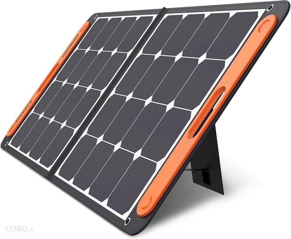 Monokrystaliczny panel słoneczny JACKERY SolarSaga 100W dzięki wysokiej konwersji, aż do 23% idealnie nadaje się do użycia w terenie a także przypadku nieoczekiwanych przerw dostawach energii elektrycznej.Panel solarny jest lekki: waży tylko 4,65 kg, jest składany i wygodny w transporcie. Generator słoneczny wysokiej konwersji: panel o wysokiej konwersji wynoszącej do 23% wraz z bankiem energii Jackery250/500/1000 (sprzedawanym osobno) tworzą przenośny system generatora słonecznego. Panel solarny wyposażony jest w gniazdo i przewód do ładowania banku energii Jackery a także dwa porty USB-A umożliwiające jednoczesne ładowanie wielu różnych urządzeń przenośnych takich jak: smartfony, tablety, laptopy, aparaty cyfrowe itp.Lekki i wytrzymały panel słoneczny wyposażony jest w podpórkę, która umożliwia ustawienie pod odpowiednim kątem w każdych warunkach. Składana konstrukcja posiada wygodny uchwyt ułatwiający przenoszenie w każdych warunkach (panel solarny nie jest wodoodporny).