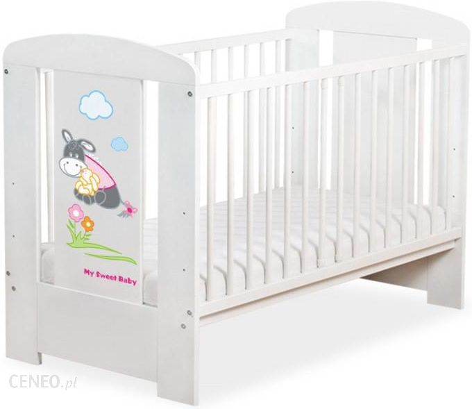 My Sweet Baby Drewniane Łóżeczko Dla Niemowląt 120X60cm Osiołek Lucek Biało-Różowe