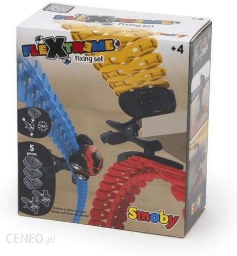 Smoby Flextreme to zupełnie nowy wymiar zabawy, który nie ogranicza kreatywności dzieci! Korzystając z elastycznych szyn, dzieci mogą montować najbardziej szalone tory wyścigowe i jeździć niesamowitymi trasami – czy będą to pętle, ekstremalne nachylenia, ekscytujące spirale czy ostre zakręty – z torem wyścigowym Smoby Flextreme już nigdy nie będzie nudno! Tory są bardzo elastyczne, dzięki czemu można je kreatywnie budować w pokoju dziecięcym: nad krzesłami, łóżkiem, biurkiem lub w innym miejscu.Zestaw z klipsem mocującym 180910 jest idealny do rozbudowy zestawu startowego Flextreme. Spraw aby twój tor Flextreme był bardziej ekstremalny. Zestaw zawiera 2 klipsy mocujące, które pozwalają mocować tory Flextreme na dowolnym przedmiocie w domu. Każdy klips ma 3 wejścia, do których można zamocować 3 platformy do mocowania na nich torów Flextreme. Zestaw startowy i samochodziki kompatybilne z torem sprzedawane oddzielnie.Zawartość i cechy zestawu:2 klipsy mocujące3 platformy do mocowaniamożliwość zabawy tylko z zestawem startowym Smoby Flextreme (sprzedawany oddzielnie)samochodziki sprzedawane oddzielnie