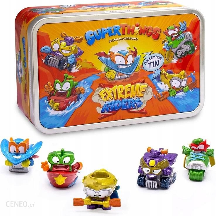 SUPER ZINGS THINGS seria 10 – RESCUE FORCEPUSZKA EXTREME RIDERSSuper Things 10 to DZIESIĄTA (najnowsza) seria bestsellerowej kolekcji figurek – ulubionych bohaterów twojego dziecka.Seria RESCUE FORCE to 10 seria, w której do zebrania jest ponad 80 nowych postaci.Dodatkowe informacje: aukcja dotyczy najnowszej puszki z 5 bohaterami Extreme Ridersnajnowsza seria 10produkt NOWY i ORYGINALNIE zapakowanyfigurki z najnowszej serii Super Things RESCUE FORCEwysokość figurek to około 3 cmproducent – MagicBoxJest to wspaniała zabawka dla dzieci, które uwielbiają kolekcjonować figurki. Niech ten zestaw stanie się początkiem wielkiej kolekcji. Zapewni on wielogodzinną wspaniałą i kreatywną zabawę.PRODUKT ORYGINALNY Z OFICJALNEJ SIECI DYSTRYBUCJI.Super Things z serii 10 – RESCUE FORCE właśnie przybyły.Nowa puszka SuperThings zawiera 5 bohaterów, którzy tworzą drużynę Extreme Riders.Te nowe SuperThings, prowadzone przez Windwing, są najszybszymi i najbardziej odważnymi miłośnikami prędkości i sportów ekstremalnych.Poznaj Wheelera, Rollerstara, Power Sailora i Flowa i przygotuj się na przygodę bez ograniczeń.Pięć postaci ma metaliczne wykończenie i występuje wyłącznie w puszce, którą można również wykorzystać do transportu i przechowywania ulubionych figurek.