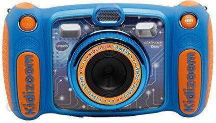 VTech Kidizoom Duo 5.0 NiebieskiAparat umożliwia robienie zdjęć, kręcenie filmików i nagrywanie dźwięków!Ten wyjątkowy aparat dla dzieci daje wiele możliwości edycji zdjęć i zachęca do tworzenia własnych wizji obrazu. Dzięki możliwości obracania obiektywu możesz robić zdjęcia innym, a także samemu sobie. Z Kidizoomem Duo pstrykanie selfie to pestka! Kolorowe filtry, animacje, nagrywanie mówiącego albumu i personalizacja gier stwarzają nowe możliwości zabawy. Aparat Kidizoom został obudowany bezpiecznym, miękkim tworzywem, dzięki czemu jest trwalszy i bardziej odporny na zderzenia. Podwójny wizjer zastosowano na potrzeby i możliwości widzenia dzieci.