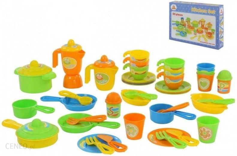 Zestaw naczy�Ilo�� element�w: 50�elem.Wiek: +3 lataProducent: Polesie WaderKolor: WielokoloroweWymiary opakowania:�43cm ? 29,5cm ? 8,5cmUwaga!�Kolorystyka zestawu mo�e si� r�ni� od zaprezentowanej na zdj�ciach.Kolor wysy�amy losowo – w zale�no�ci od dostawy.�niadanie, obiad, kolacja,�piknik, podwieczorek, herbatka z ciasteczkiem i ka�dy inny pocz�stunek to �wietna okazja do u�ycia naczy� marki Wader. Okazuje si�, �e lalki i pluszaki naszych pociech jedz� niezliczon� ilo�� posi�k�w w ci�gu dnia.Zestaw obiadowy firmy WADER POLESIE, z kt�rego ma�a mistrzyni kuchni wyczaruje swoje dania popisowe i poda je na pi�knej zastawie z zestawu. Kucharka znajdzie tu karafk�, dzbanek z pokrywk�, garnuszek oraz patelnie, talerzyki i sztu�ce, fili�anki oraz kubki.Zabawka jest wykonana z najwy�szej jako�ci tworzywa.W sk�ad zestawu wchodzi:- dzbanek z pokrywk�- karafka- patelnia z pokrywk�- garnek z pokrywk�- patelnia – 2szt- rondelek – 2szt- p�misek – 3szt- fili�anki – 6szt- kubek – 5szt- talerzyki – 11szt- sztu�ce – 9szt- solniczka i pieprzniczka ��